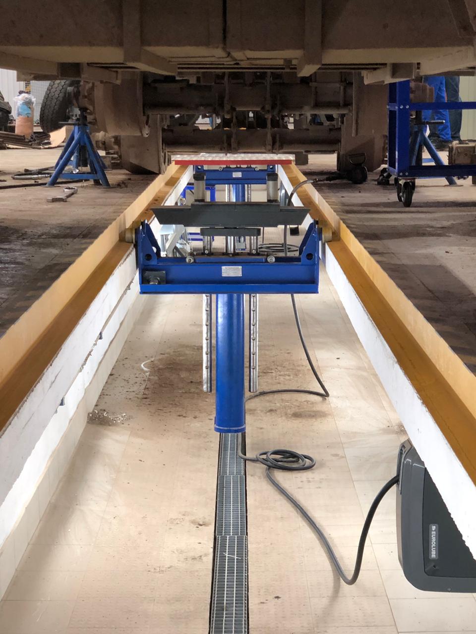 Подъёмник канавный передвижной с интегрированной системой поддержки. Привод - ручной гидравлический, грузоподъёмность - 10,0 тн.