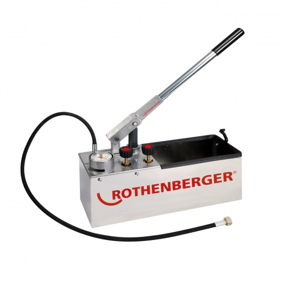 Опрессовочный насос Rothenberger RP 50-S/ RP 50-S INOX - прочный, точный и надежный ручной опрессовочный насос для испытания трубопроводных систем и резервуаров давлением до 60 бар. Надежность и производительность достигается благодаря наличию системы двойных клапанов, заполнение системы и испытание давлением выполняются за 1 операцию. Предназначен для поверки систем при помощи воды или масла. Возможно дополнительное оснащение манометром с точной шкалой 0,1 бар для испытания до 16 бар. Выпускается с двумя типами резервуаров: сталь с покрытием DURAMANT (модель 50-S) и нержавеющая сталь (модель 50-S INOX).