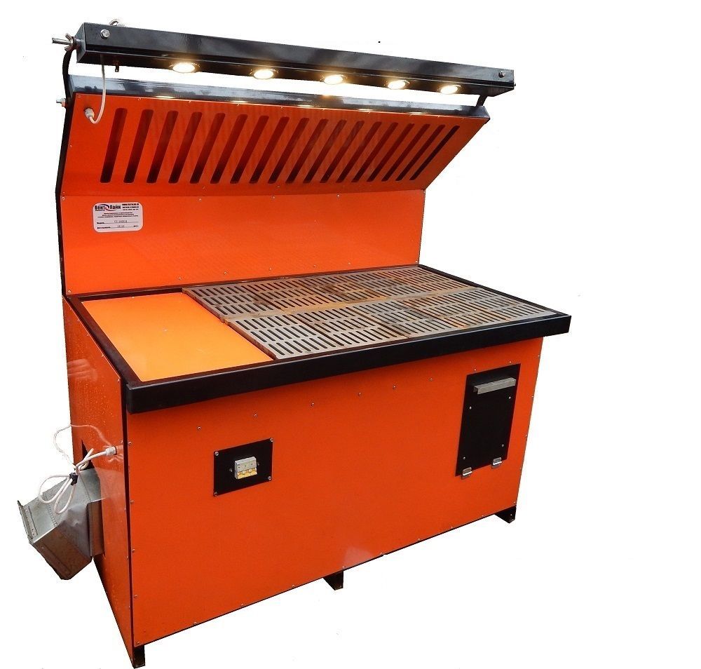 Соединение центробежного вентилятора с внешним воздуховодом осуществляется посредством гибкой вставки. Органы управления электрической частью стола сварщика расположены на его лицевой панели. Там же находится колчан для электродов.