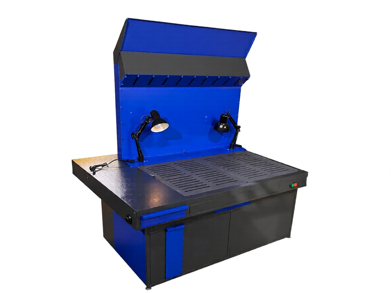 Для удаления вредных веществ с поверхности стол сварщика ССН-01 оборудован вытяжной вентиляционной системой со встроенным вентилятором.