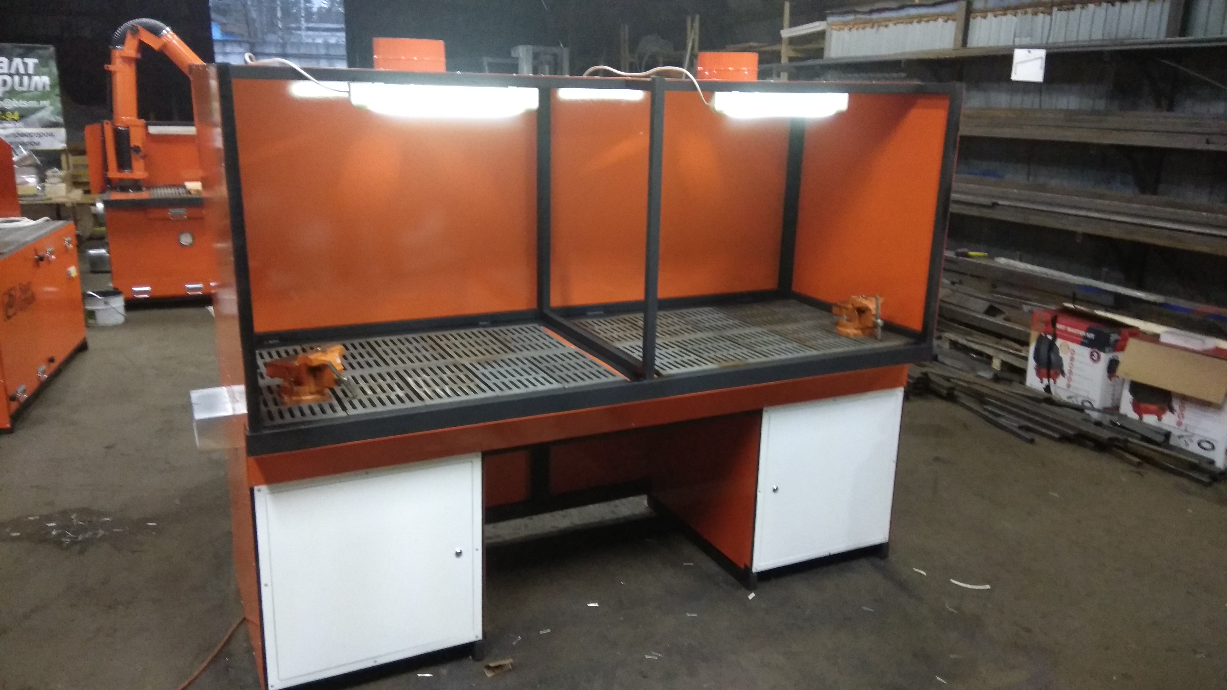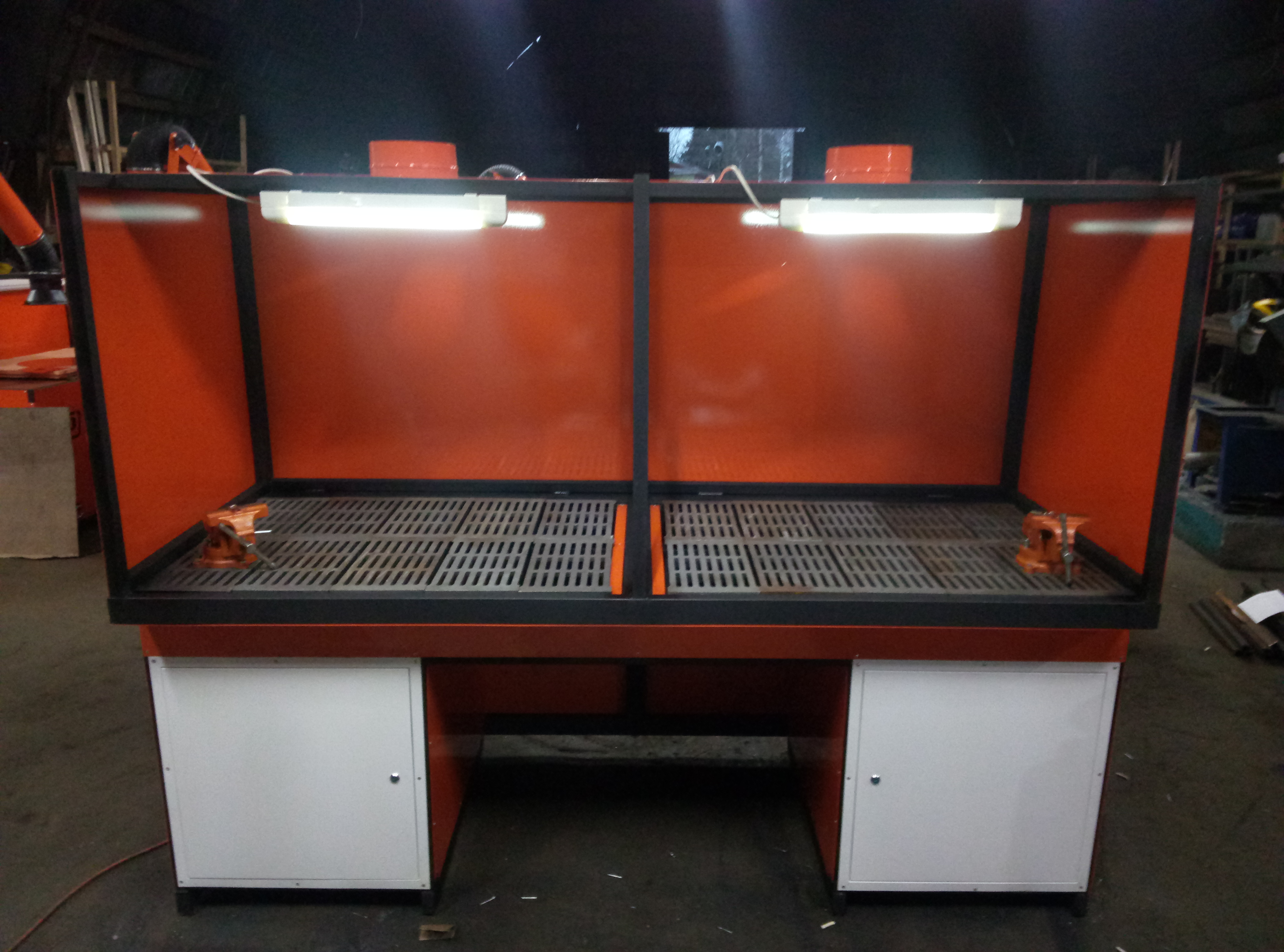 Очищение воздуха рабочей зоны может производиться, как путем разрежения общецеховой вентиляции, так и при помощи встроенного вентилятора.