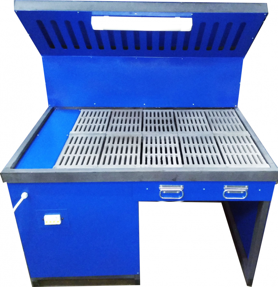 Стол сварщика ССВ-2М без вентилятора отлично подходит для работ, в ходе выполнения которых необходимо оперативно устранить с рабочего места пылегазовую смесь, например, сварочных, зачистных и шлифовальных.