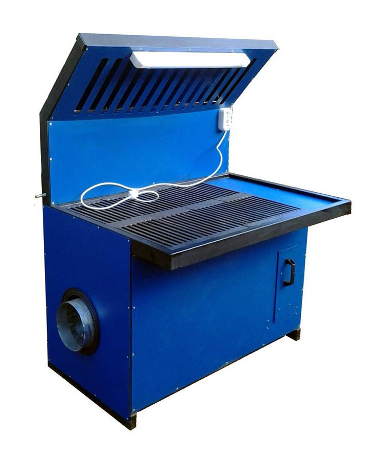 Стол сварщика ССВ-2 без вентилятора отлично подходит для работ, в ходе выполнения которых необходимо оперативно устранить с рабочего места пылегазовую смесь, например, сварочных, зачистных и шлифовальных.