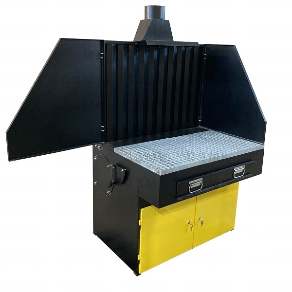 – высокая эффективность локализации пыли и дыма за счет всасывания через две плоскости стола: снизу (через колосниковую решетку в столешнице) и с задней части (через верт. всасывающую панель);
