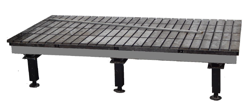 Максимально допустимая равномерно распределенная нагрузка на одну цельнолитую алюминиево-медную балку составляет 1500 кг. При необходимости общая максимально допустимая равномерно распределенная нагрузка на сварочный стол может быть увеличена при использовании соответствующего каркаса основания сварочно-сборочного стола.