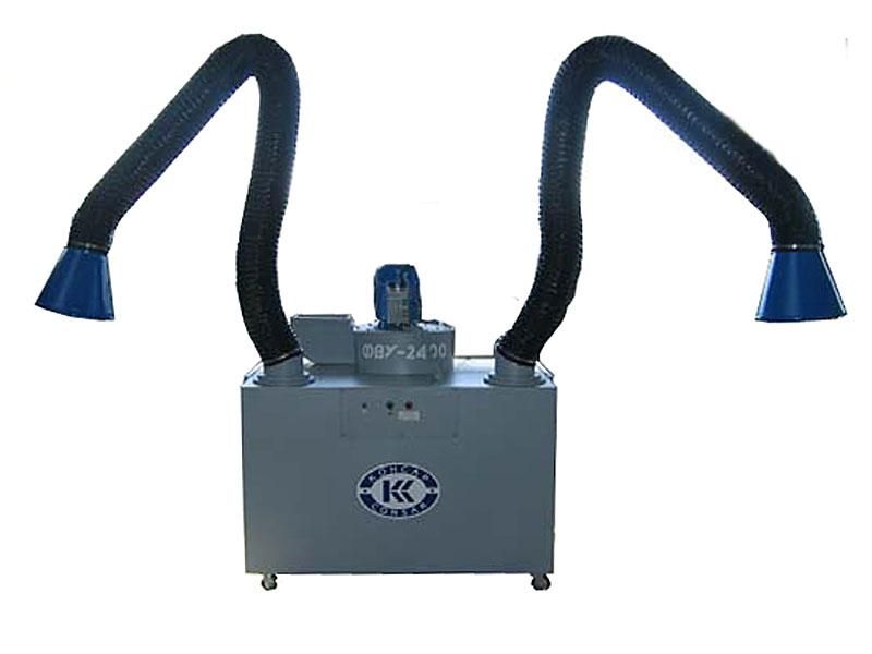 Конструктивно установка ФВУ-2400 состоит из двух воздуховодов, закрепленных на двух поворотных узлах, вентилятора, фильтра грубой очистки, электростатического фильтра, выполненных в едином корпусе. Воздуховоды закреплены на шарнирно-поворотных механизмах и вращаются вокруг своей оси на 360°, что позволяет зафиксировать воздухозаборные воронки в любом пространственном положении обслуживаемых зон. Радиус действия одного поворотного устройства 2 м.