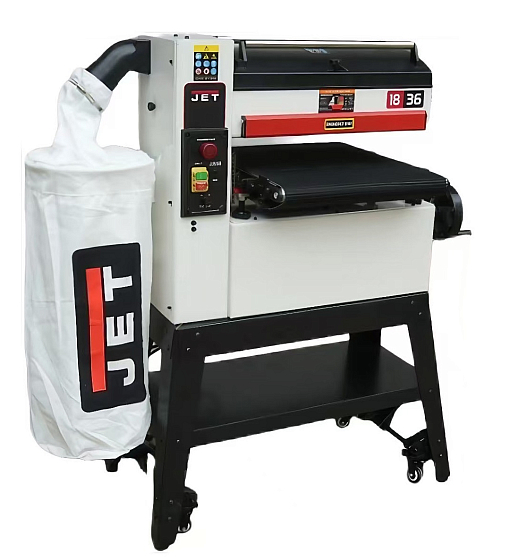 Такие системы обычно только в промышленных шлифовщиках. В станках JET раньше такого не было вообще. Теперь есть. Раньше была только аварийная кнопка-грибок на контрольной панели, здесь он тоже, конечно, есть. Консольный тип станка даст шикарную возможность обработать не только стандартную ширину в 457 мм, но и двойную ширину с переворотом.