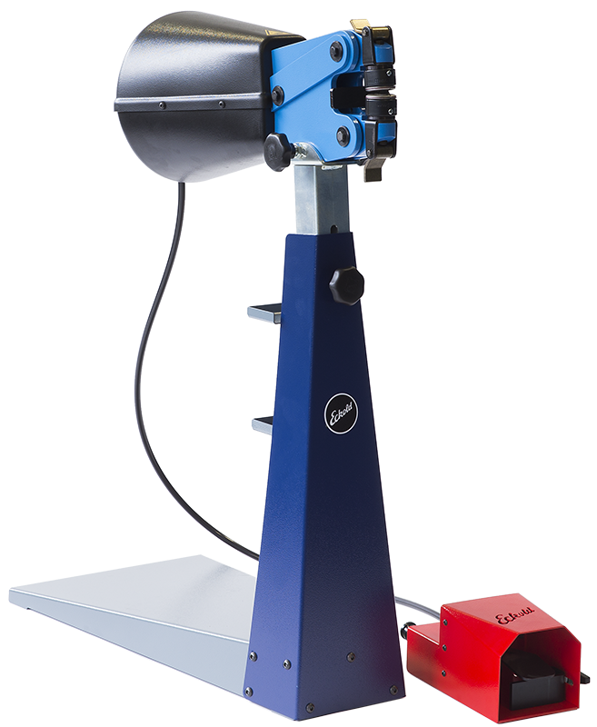 Ручная формовочная машина HF 100 PA - устройство с пневматическим приводом, работающее с ограничением давления для предотвращения перегрузки инструмента. Каждое нажатие на педальный переключатель запускает рабочий такт. Лёгкое нажатие на педаль вызывает рабочий такт с малым усилием, в то время, как полное нажатие освобождает всё усилие привода.