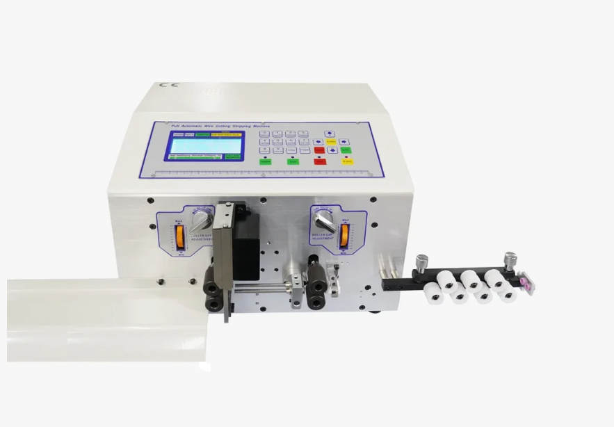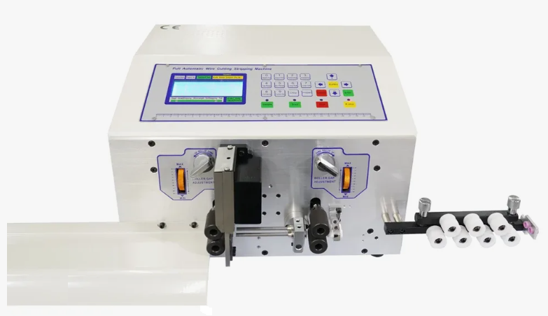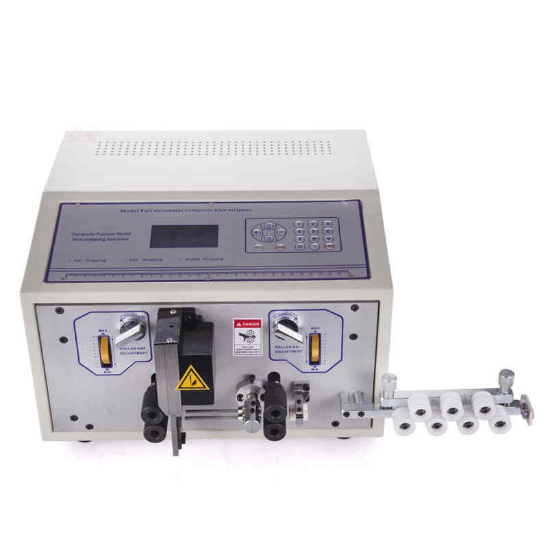 Автоматическая машина с 4-мя роликами для перемещения, резки, зачистки толстых проводов. Для данной модели увеличена возможная длина зачисти до 70 мм. Необходимо только установить длину реза и зачистки для каждой из сторон, а так же общую сумму отрезов, после чего машина сделает все автоматически.