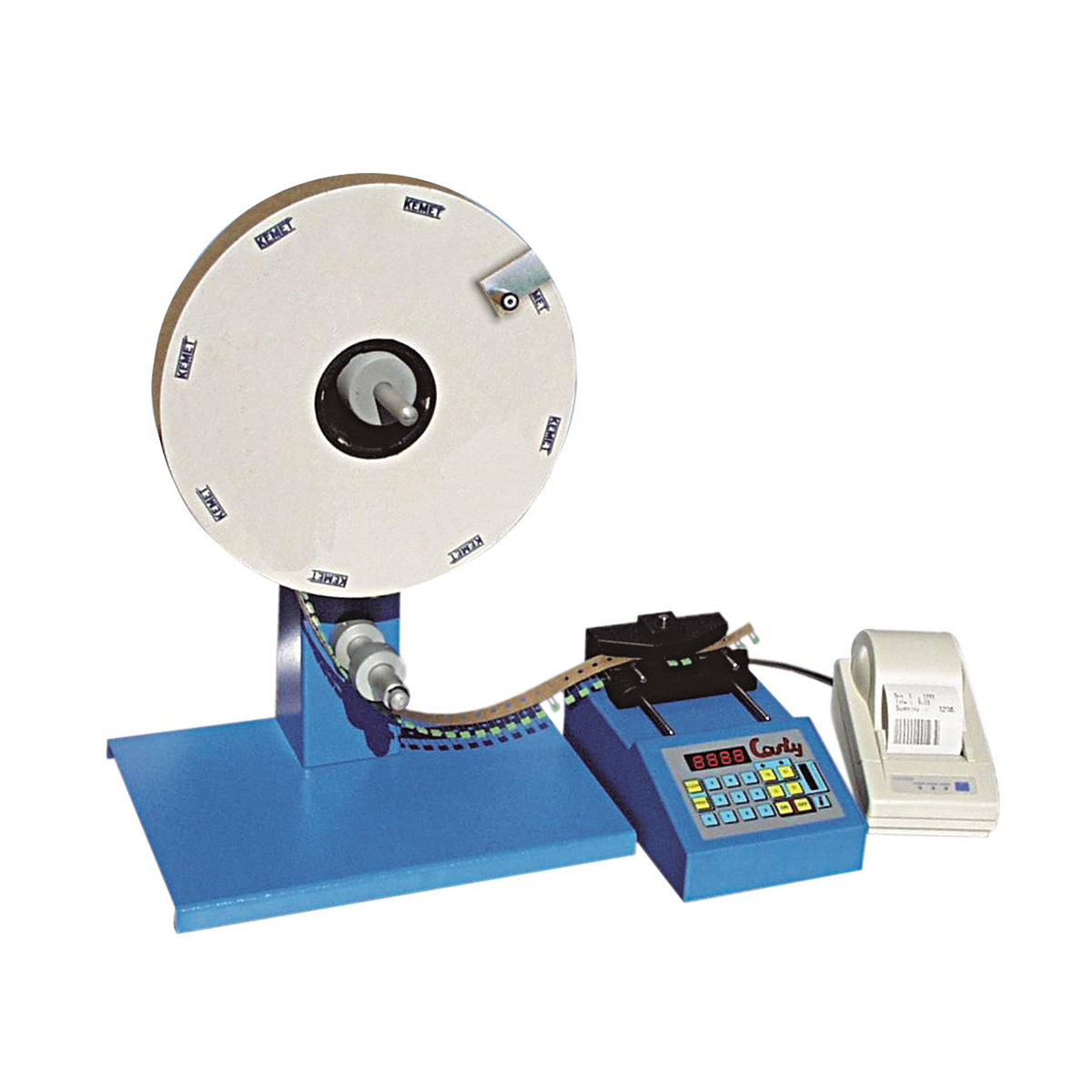 четчик радиальных, аксиальных и SMD-компонентов «COUNTY EVO», Olamef - основан на микрокомпьютере и предназначен для счета радиальных и аксиальных компонентов в ленте с ручной перемоткой, а также при подключении к нему адаптера может производить счет SMD-компонентов и с возможностью подключения его к этикеточному принтеру. Подсчет THT компонентов происходит по количеству выводов, SMD компонентов – по количеству отверстий перфорации ленты. Количество выводов THT компонента или количество SMD компонентов на одно отверстие перфорации вводится оператором перед началом работы. Подсчет может производиться в двух направлениях (влево и вправо).Прибор оснащен микропроцессором и имеет встроенную систему калибровки и самодиагностики. Информация о количестве компонентов отображается на 4-х разрядном дисплее. Последний результат подсчета сохраняется в памяти. Интерфейс RS-232 позволяет подключить прибор к компьютеру или напрямую к термопринтеру для печати этикеток.
