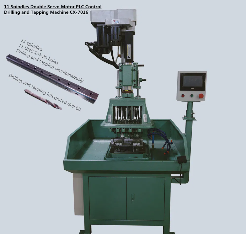 По сравнению с традиционными сверлильно-нарезными станками, в этом станке используется двухмоторная головка с сервоприводами, что делает его легким и позволяет легко переключаться между функциями сверления и нарезания резьбы. Управление с помощью ПЛК делает работу более удобной и простой.