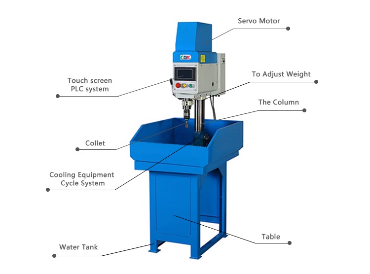 В этой машине используется система сервоуправления с низким уровнем шума, подходящая для сверления, увеличения, развертывания и нарезания резьбы по различным распространенным материалам.