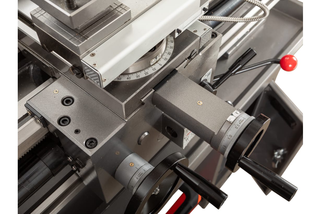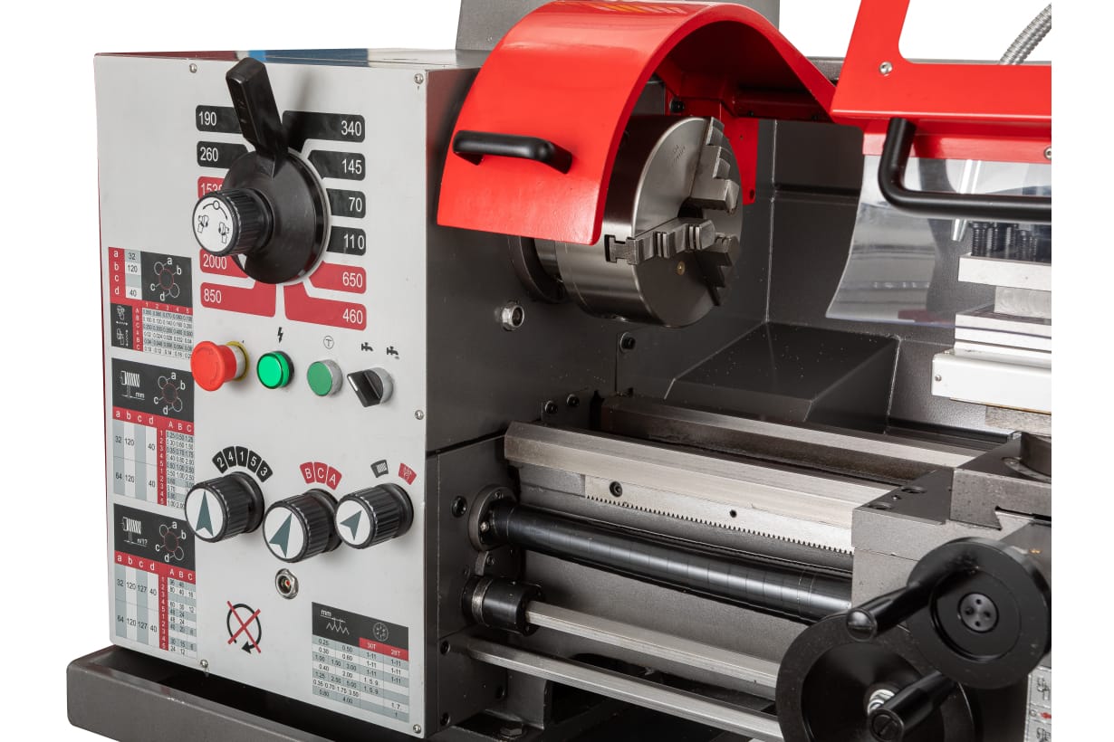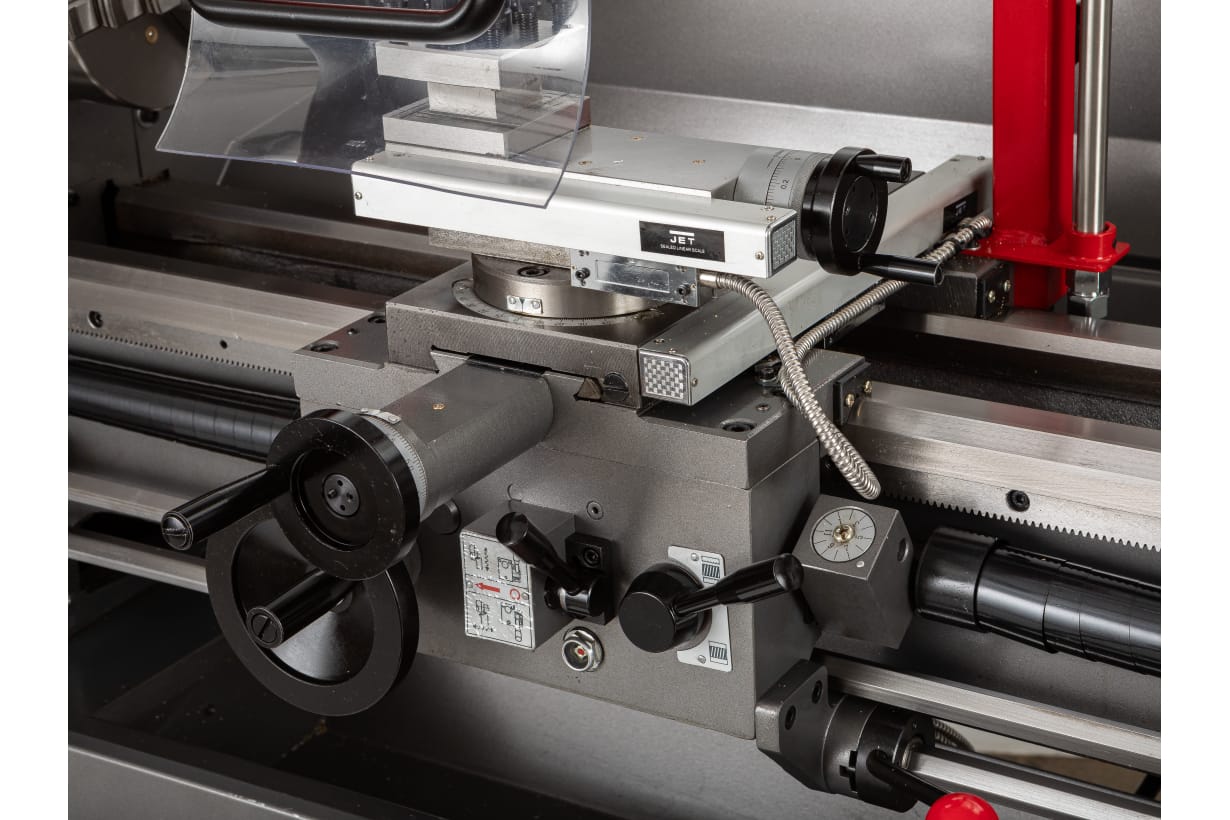 JET BD-13G имеет 15 типов продольных и поперечных подач в автоматическом режиме, а также позволяет нарезать 18-ть видов метрических и 13-ть видов дюймовых резьб. Для удобства нарезания длинных резьб, станок укомплектован резьбоуказателем. На станке предусмотрена возможность нарезания правой и левой резьбы