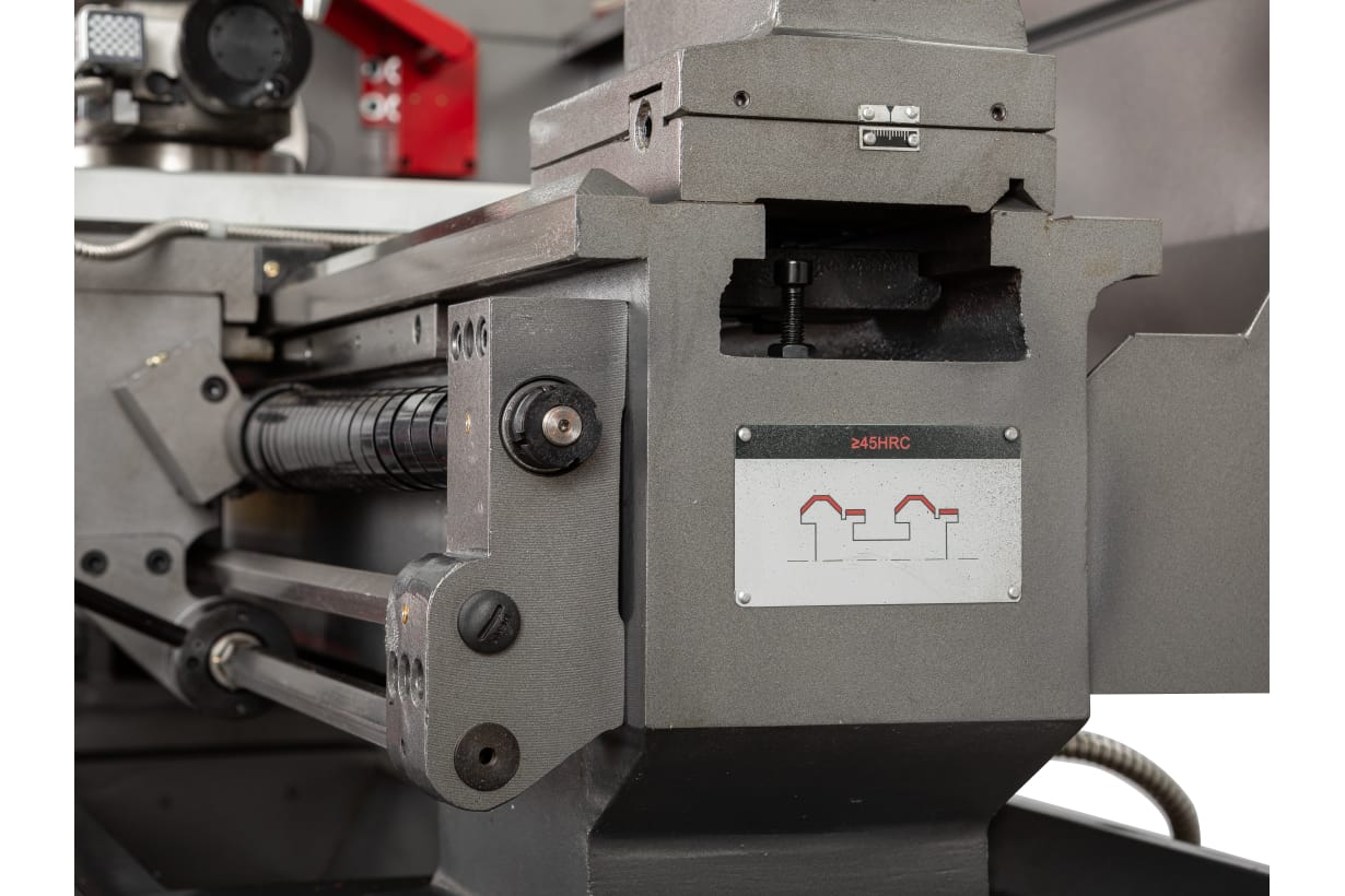 - Массивная задняя бабка с регулировкой смещения для обточки конусов и рычагом быстрой фиксации